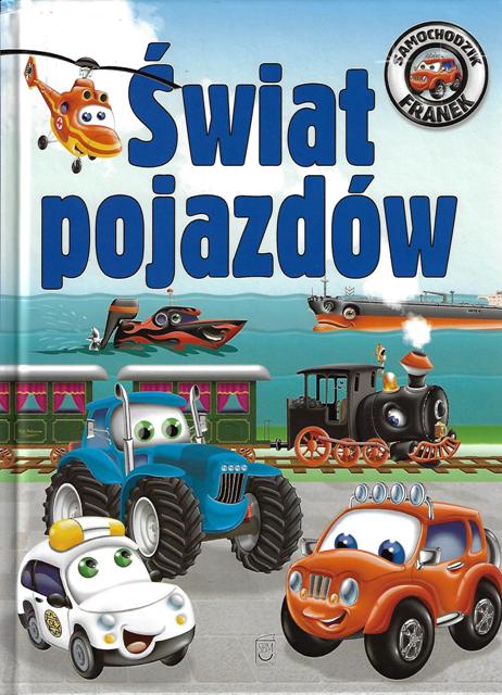 Świat pojazdów Samochodzik Franek. Świat pojazdów to opowieści o wesołym terenowym samochodziku i jego przyjaciołach. Dowiedz się, jakie statki, pociągi i samoloty spotkał nasz bohater. Razem z samochodzikiem Frankiem pomagaj traktorom i przeżyj przygodę w mieście! [okł.]