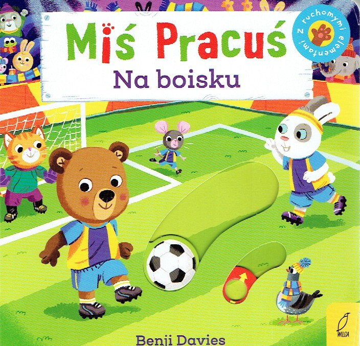 Poznawajcie świat z Misiem Pracusiem! Czytając wesołe książeczki i przesuwając ruchome elementy, mały czytelnik może poznać różne zawody lub miejsca. Miś Pracuś. Na boisku zabierze maluchy na boisko piłkarskie. Dzięki ruchomym elementom maluchy będą miały okazję strzelić lewkowi gola, podać piłkę króliczkowi czy świętować z przyjaciółmi wspólne zwycięstwo! Powyższy opis pochodzi od wydawcy.