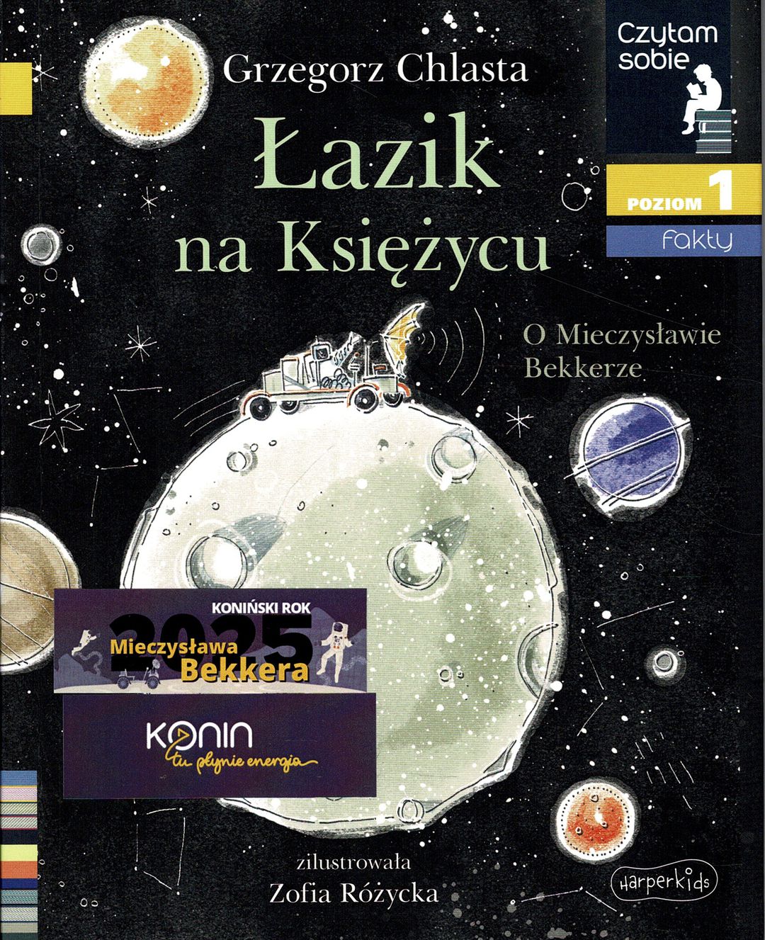 Łazik na Księżycu : o Mieczysławie Bekkerze / Grzegorz Chlasta ; zilustrowała Zofia Różycka. - Warszawa : Harperkids, 2022. - 31, [1] strona, [1] karta tablic : ilustracje ; 19 cm.