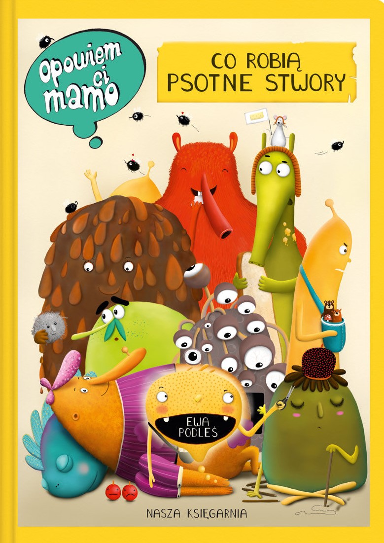 Na pewno dobrze znacie te stwory, choć nawet tego nie podejrzewaliście! Przedstawiamy wam Chlewusia, miłośnika skarpetek o aromacie sera, którego środowiskiem natural­nym jest bałagan, Ściemkę testującą najnowsze trendy w kłamstewkach, Pasibrzucha wcinającego jedzonko na wszystkie litery alfabetu oraz wielu innych psotników i gamoni. Z tej książki dowiecie się też, jak często Błotko (z towarzyszącym jej kłębkiem kurzu) bierze kąpiel, czy państwo Tomoje kiedyś przestaną wyrywać sobie wszystko z rąk, jakie kawały lubi robić Chechełko oraz czy Fochnę da się przytulić. "Opowiem ci, mamo, co robią psotne stwory” to wspaniała książka do czytania i oglą­dania. Ćwiczy u najmłodszych spostrzegawczość i umiejętność opowiadania, pobudza wyobraźnię, ale przede pozwala na twórcze spędzenie czasu i fantastyczną zabawę.