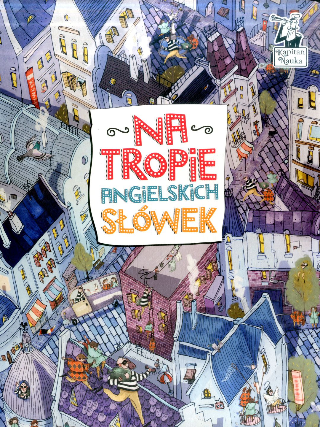Książka obrazkowa Na tropie angielskich słówek to dwanaście bogato ilustrowanych rozkładówek, które zabierają młodych odkrywców w podróż po rzeczywistych i całkiem zmyślonych światach. Wyprawa pirackim okrętem, nocne poszukiwanie złodzieja, wycieczka do zoo czy na planetę dziwolągów – w takich miejscach nie może być nudno. Szukanie szczegółów, ukrytych postaci i wymyślanie historii inspirowanych ilustracjami to zabawa na wiele godzin oraz doskonałe ćwiczenie spostrzegawczości i koncentracji. Na tropie angielskich słówek to wyjątkowe połączenie picture booka ze słownikiem, jednak ilustracje odgrywają tu główną rolę i nie są jedynie graficznym przedstawieniem słówek. Angielskie wyrazy, zwroty i proste zdania pojawiają się na planszach na zasadzie skojarzeń, co sprawia, że czytelnik przyswaja je w naturalny i intuicyjny sposób. Słownictwo dotyczy m.in. liczb, kolorów, pór roku, środków transportu, zabawek, rodziny, dzikich i udomowionych zwierząt, ubrań, emocji oraz części ciała. Wyjątkowe rysunki do książki wykonało jedenastu polskich ilustratorów, a każdą planszę cechuje niepowtarzalny styl i charakter. Tematy rozkładówek są zróżnicowane pod względem szczegółowości i będą odpowiednie zarówno dla przedszkolaków, jak i dzieci w wieku szkolnym. Trwała i atrakcyjna forma wydania (duży format, gruby karton) sprawiają, że książka może być wartościowym prezentem dla każdego małego tropiciela. Wszystkie słówka w książce są podane w polskim tłumaczeniu. Dodatkowo można pobrać nagrania z poprawną wymową w formacie mp3 ze strony KapitanNauka.pl/natropie. Odkryj w sobie pasję tropiciela z naszymi ilustratorami: Ľ Statek piracki (liczby) – Kamila Kozłowska Ľ Pory roku (przyroda i pogoda) – Agata Kopff Ľ W pracowni malarza (kolory i kształty) – Daria Bidzińska Ľ W krainie czarów (zabawki) – Katarzyna Urbaniak Ľ Przyjęcie domowe (moja rodzina) – Katarzyna Fus Ľ Na tropie złodzieja (przyimki) – Paulina Wyrt Ľ W zoo (zwierzęta dzikie i gospodarskie) – Maciej Łazowski Ľ W lunaparku (emocje) – Katarzyna Urbaniak Ľ W mieście (środki transportu) – Tomasz Kowal Ľ Plac zabaw (części ciała i ubrania) – Katarzyna Kołodziej Ľ W kawiarni (jedzenie) – Robert Romanowicz Ľ Planeta dziwolągów (przymiotniki i przeciwieństwa) – Marcin Minor.