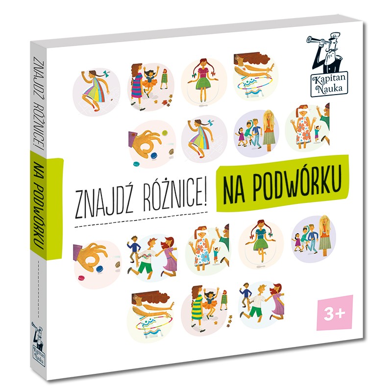 Każda para rysunków różni się trzema szczegółami - pierwszy nikomu nie sprawi problemu, drugi jest odrobinę trudniejszy, a trzeci szczegół to zadanie tylko dla prawdziwych bystrzaków! Książeczka Znajdź różnicę Na podwórku to zbiór ciekawych, wieloelementowych ilustracji z znanymi dzieciom zabawami podwórkowymi, które zainspirują najmłodszych, a dorosłym przypomną rozrywki z dzieciństwa. Przed nami 20 stron fascynującej zabawy - berek, klasy to tylko niektóre z podwórkowych gier, w które grały kolejne pokolenia. Opowiadaj o zabawach i znajdź 3 różnice na obrazkach! Wyszukiwanie różnic na ilustracjach to doskonały sposób na ćwiczenie spostrzegawczości i refleksu (kto pierwszy znajdzie różnicę) i gwarancja doskonałej zabawy. Piękne rysunki zainspirują do tworzenia własnych historii o bohaterach i zachęcą do zabawy na podwórku.