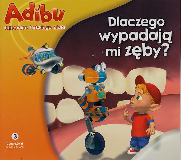 Dlaczego dzieciom wypadają zęby? I dlaczego zęby mleczne tak właśnie się nazywają? Adibu, jak zwykle, zadaje mnóstwo pytań. Robitok cierpliwie na nie odpowiada. A Bert...No właśnie. Zajrzyj do książeczki i przeczytaj o nowych przygodach trójki przyjaciół.